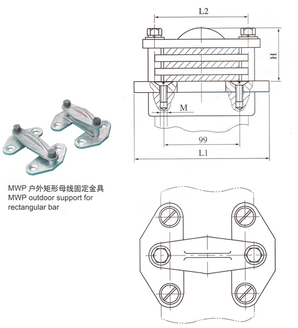 2)户外二片矩形母线固定金具(平放式)